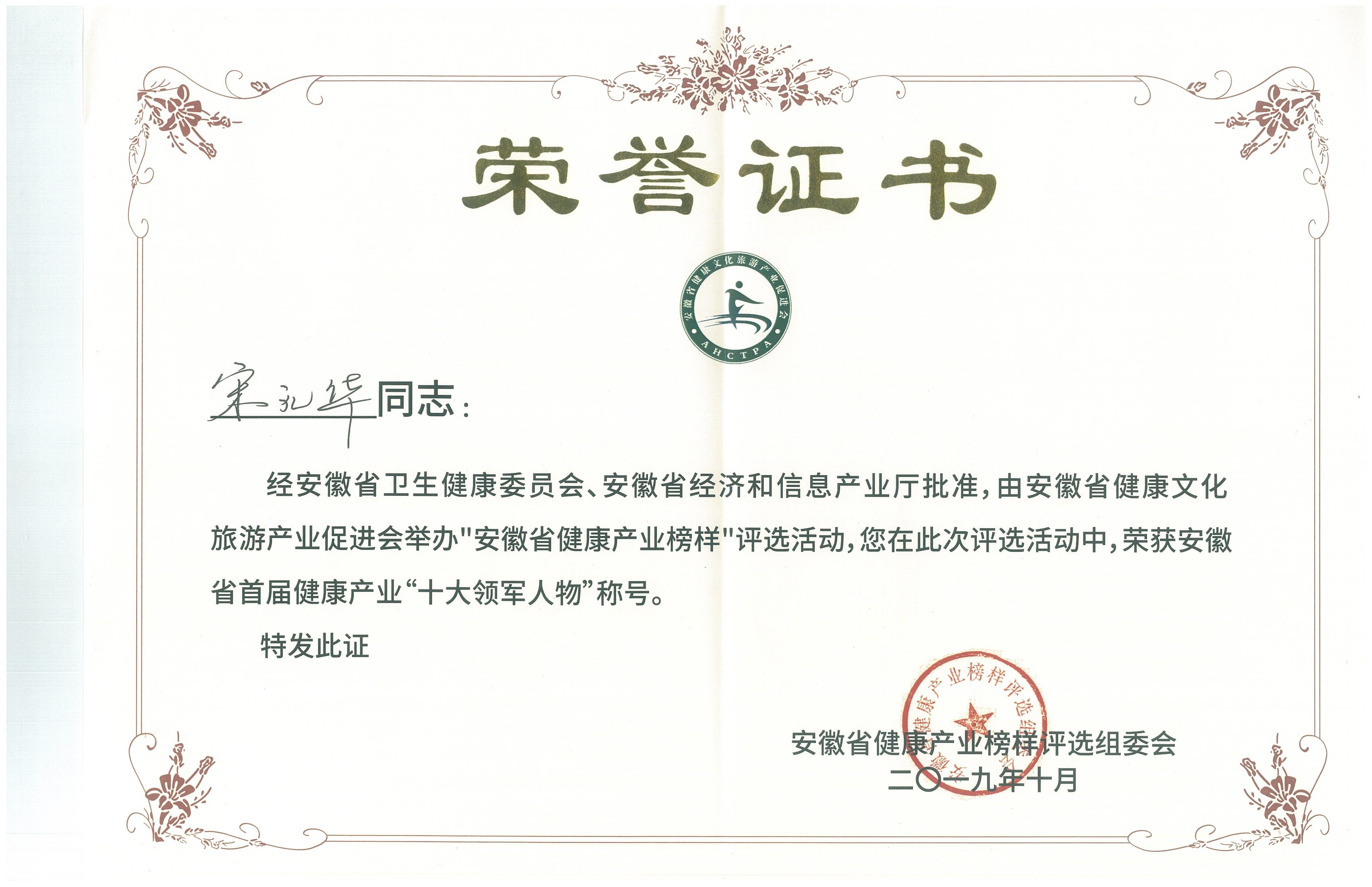 宋禮華董事長榮獲“安徽省健康產業榜樣評選十大領軍人物”稱號
