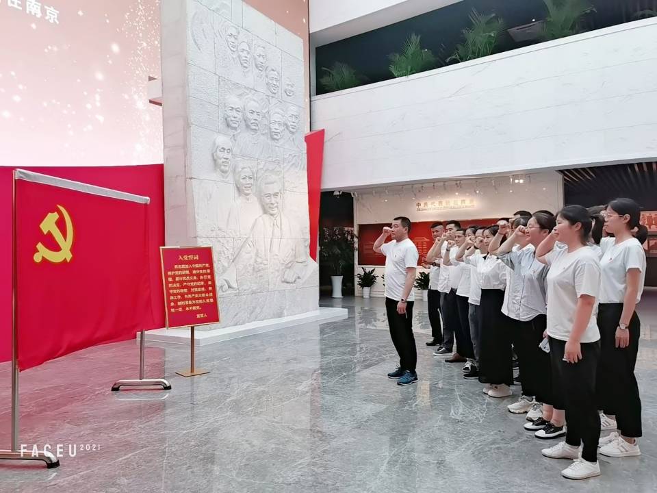 在梅園新村紀念館內,全體黨員胸佩黨徽、列隊肅立,面對鮮紅的黨旗,支部書記朱衛兵同志帶領大家高舉右拳重溫了入黨誓詞,“我志愿加入中國共產黨,擁護黨的綱領、遵守黨的章程……”莊嚴肅穆、鏗鏘嘹亮的宣誓聲再次表達對黨的鄭重承諾。