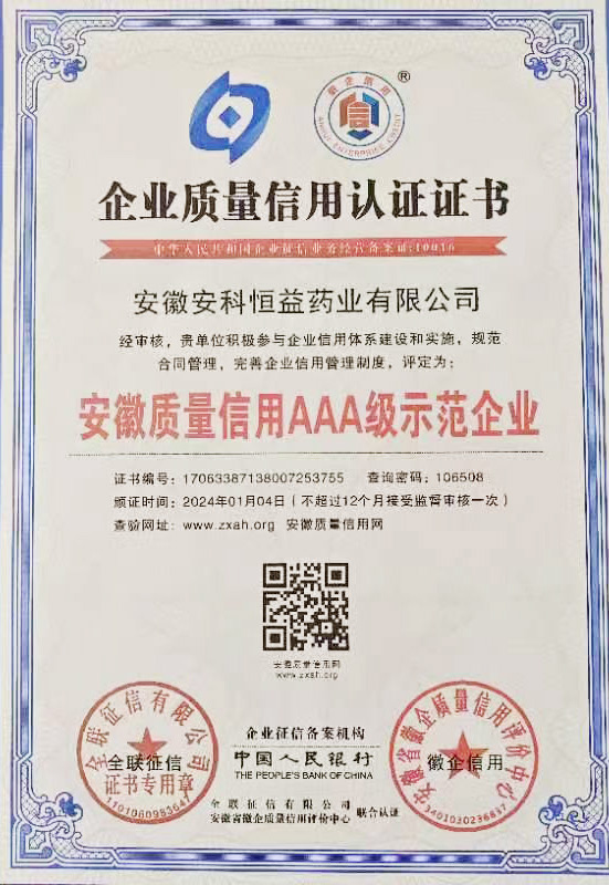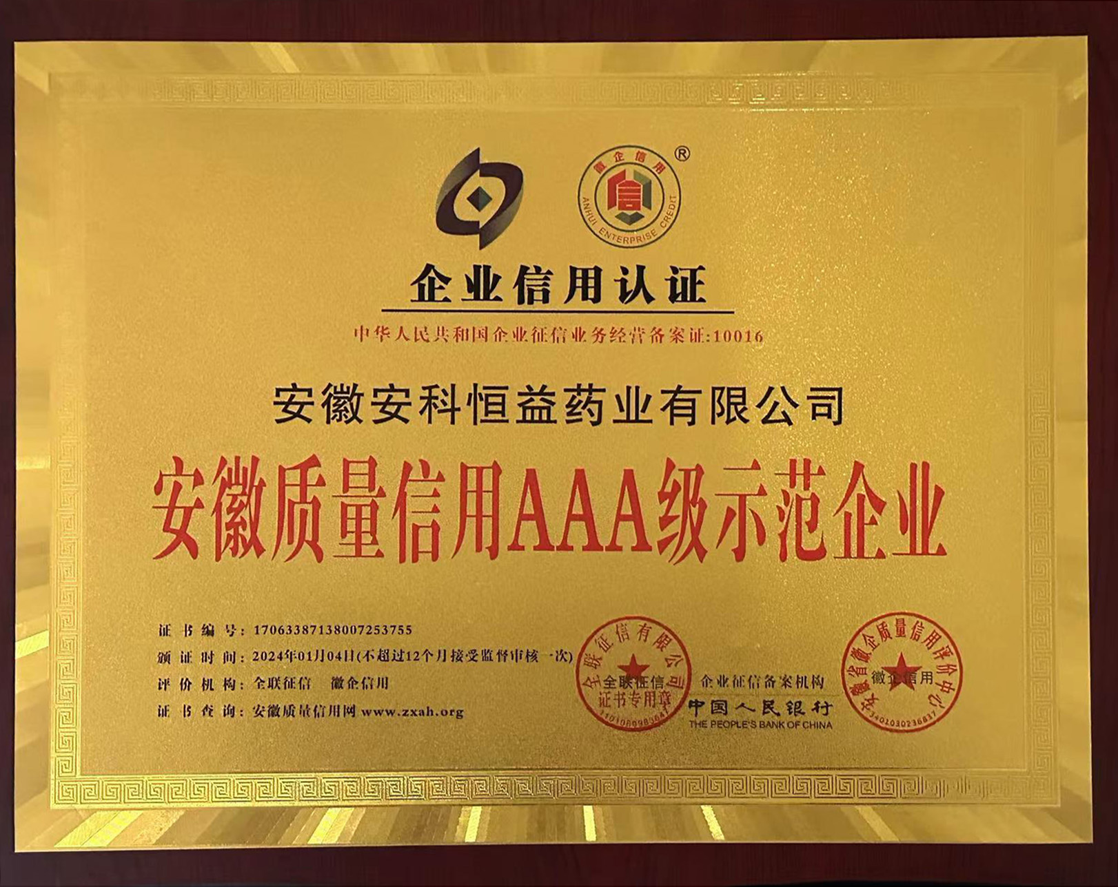 該信用評價是公司第二次取得,此次評定是繼2020年度認定到期后的重新評定。此次獲得“安徽省質量信用AAA級示范企業”榮譽稱號,是公司在企業信用及質量管理領域方面取得的可喜成果,是權威機構對公司在履行合同約定、兌現服務許諾等方面的充分肯定。